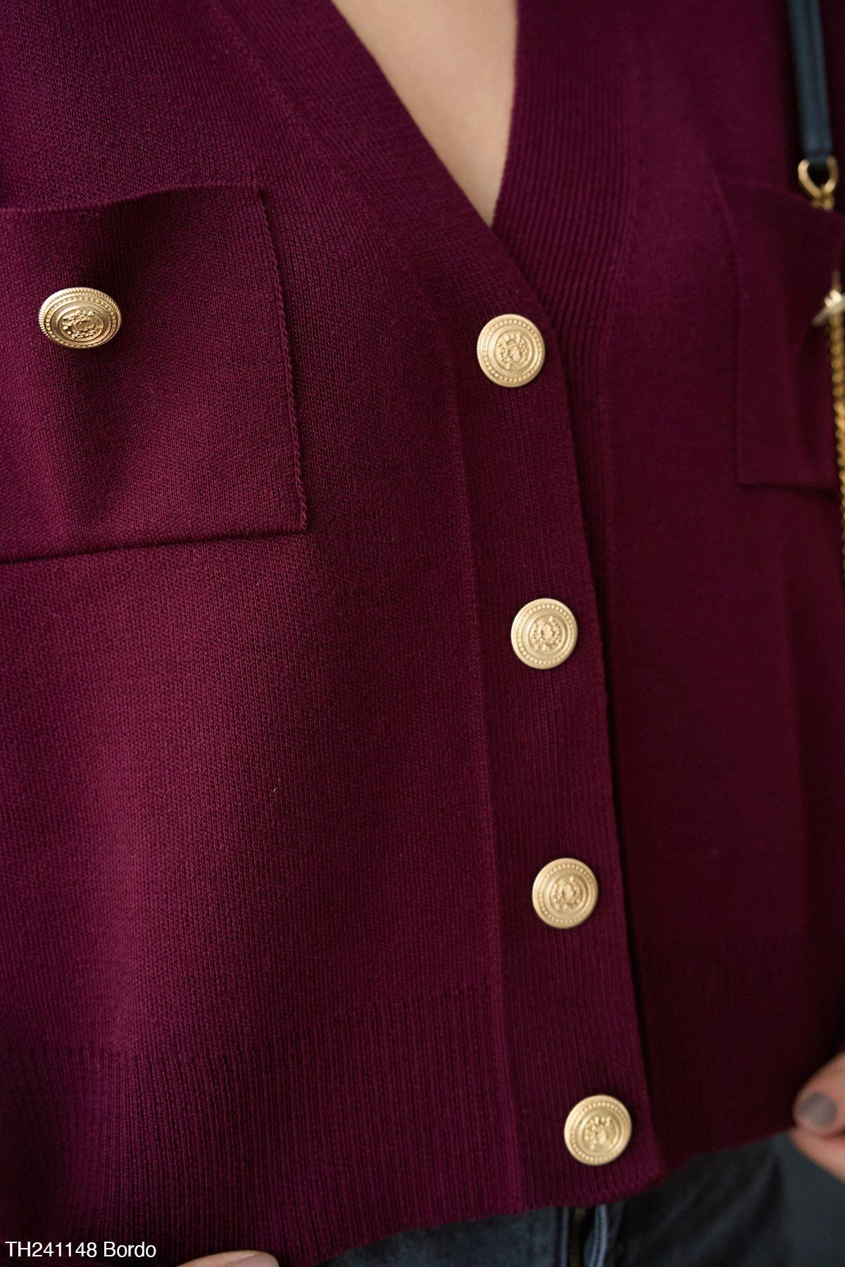 Gold Düğme Detaylı Angora Hırka - Vanilya